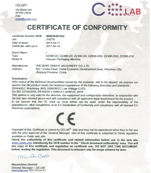鼎業真空機CE證書